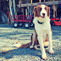 Skip - Slated to be our herding dog if he ever grows out of his teen enthusiasm for chasing everything that moves. Skip is a rare red and white, tri-color, and sable border collie with working dog credentials.